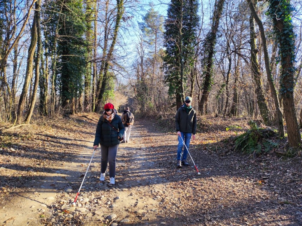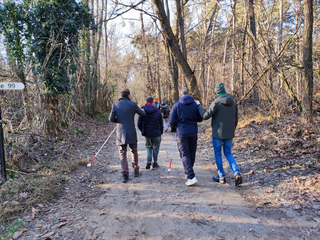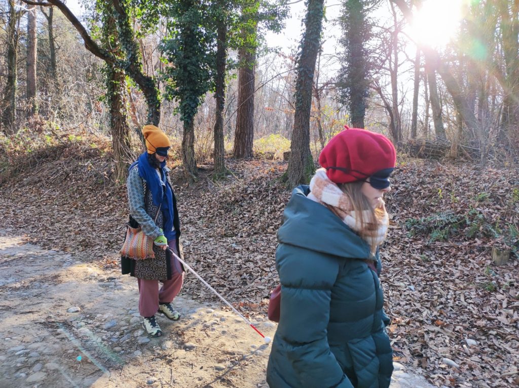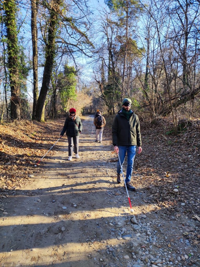 Ogni bastone bianco diventava una guida sicura, mentre i partecipanti si fidavano dei propri sensi e delle persone accanto a loro. Alcuni di loro hanno condiviso emozioni intense, raccontando di essersi sentiti fluttuare non appena hanno indossato la benda, come se fossero più connessi a se stessi e parte di qualcosa di più grande. Le sensazioni si sono amplificate, con le voci delle guide che diventavano un riferimento fondamentale e il tatto a giocare un ruolo centrale: percepire il terreno che cambiava sotto i piedi e il bastone ha reso l’esperienza ancora più immersiva.